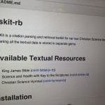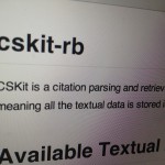 It is the result of the “Hack Your Church” hackathon at the U.C. Berkeley CSO this past weekend. Julian, Cameron, James and Gabriel all worked on the ideas. It uses Cameron’s cskit-rb library to retrieve citations. It’s still a little rough around the edges but works nonetheless. Check it out!